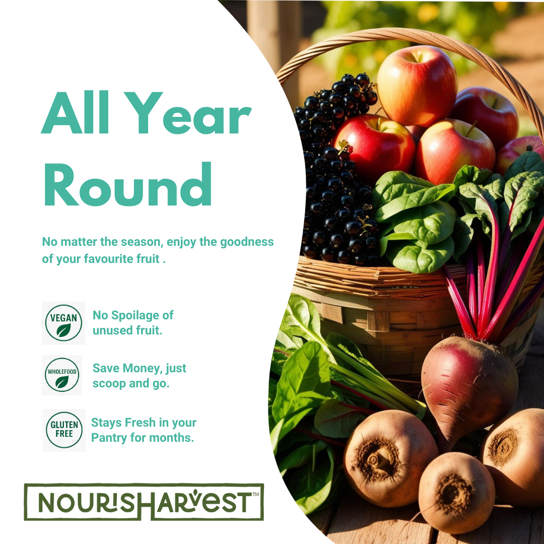 Our Red Smoothie Powder is made from whole, farm-fresh produce, carefully dried and powdered to lock in its natural goodness. With nothing added or removed except water, you get pure, concentrated nutrition in every scoop.