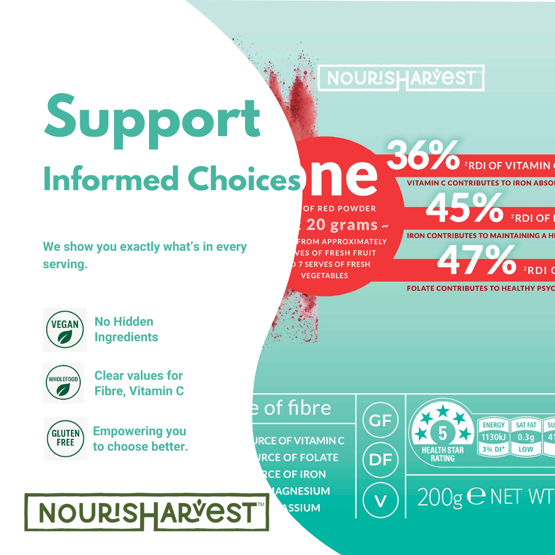 β¨ Power up your health the Nourisharvest way β add Red Smoothie Powder to your cart today!